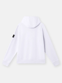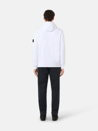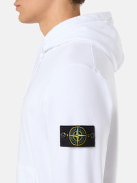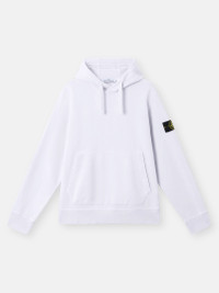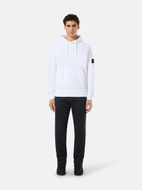 Hooded sweatshirt in organic cotton fleece featuring overlock seams, a pouch pocket with slanted entrances, and elasticated ribbed trims. Garment dyed. FABRIC RESEARCH AND TREATMENT Hooded sweatshirt in organic cotton fleece. Garment dyed. STYLE AND FIT Drawstring hood. Overlock seams. Pouch pocket with slanted entrances. Stone Island badge on left sleeve. Lunette under back neckline with inner lining. Elasticated ribbed cuffs and bottom band. Regular fit. COMPOSITION AND CARE External Fabric: 100% Cotton. Ribbing: 98% Cotton 2% Elastane / Spandex