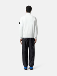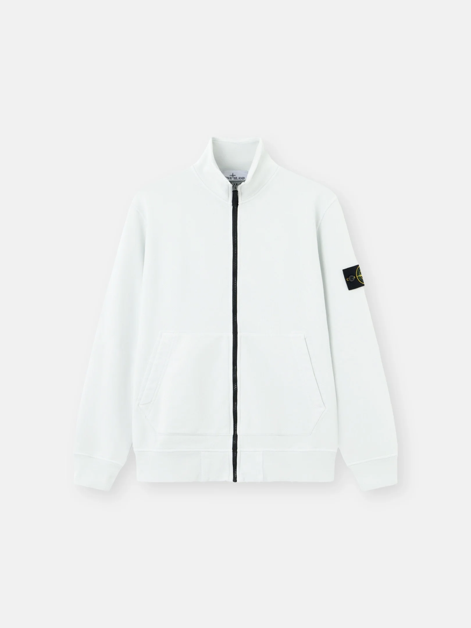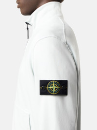 Track jacket in organic cotton fleece, featuring hand pockets, a lunette under the back neckline, overlock seams, ribbed trims, and zipper fastening. Midweight. Garment dyed. FABRIC RESEARCH AND TREATMENT Zipper-up track jacket in organic cotton fleece. Midweight. Garment dyed. STYLE AND FIT Stand collar. Angled patch hand pockets with internal tape reinforcement. Stone Island badge on left sleeve. Lunette under back neckline with internal reinforcement. Ribbed cuffs and bottom band. Zipper fastening. Overlock stitching at seams. Regular fit. COMPOSITION AND CARE External Fabric: 100% Cotton Ribbing: 99% Cotton 1% Elastane / Spandex