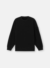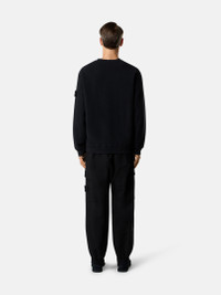 Crewneck sweatshirt in stretch organic cotton fleece with ribbed neckline, cuffs, and bottom band. Garment dyed. FABRIC RESEARCH AND TREATMENT Crewneck sweatshirt made from 95% organic cotton and 5% elastane fleece. Garment dyed. STYLE AND FIT Ribbed neckline. Stone Island Ghost badge on left sleeve. Ribbed cuffs and bottom band. Comfort fit. COMPOSITION AND CARE External Fabric: 95% Cotton 5% Elastane / Spandex. Ribbing: 100% Cotton