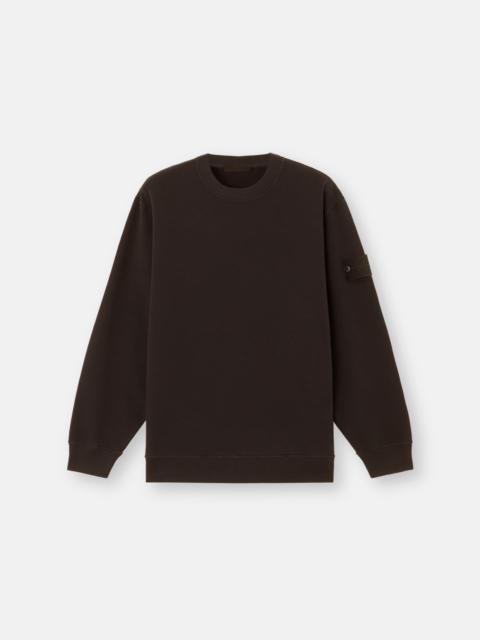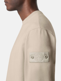 Crewneck sweatshirt in stretch organic cotton fleece with ribbed neckline, cuffs, and bottom band. Garment dyed. FABRIC RESEARCH AND TREATMENT Crewneck sweatshirt made from 95% organic cotton and 5% elastane fleece. Garment dyed. STYLE AND FIT Ribbed neckline. Stone Island Ghost badge on left sleeve. Ribbed cuffs and bottom band. Comfort fit. COMPOSITION AND CARE External Fabric: 95% Cotton 5% Elastane / Spandex. Ribbing: 100% Cotton