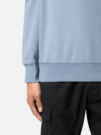 Half-zipper sweatshirt in organic cotton fleece, featuring a stand collar with ribbed lining, overlock seams, and ribbed trims. Midweight. Garment dyed. FABRIC RESEARCH AND TREATMENT Half-zipper sweatshirt in organic cotton fleece. Midweight. Garment dyed. STYLE AND FIT Stand collar with ribbed lining. Half-zipper fastening. Lunette under back neckline with internal reinforcement. Stone Island badge on left sleeve. Ribbed cuffs and bottom band. Overlock stitching at seams. Regular fit. COMPOSITION AND CARE External Fabric: 100% Cotton Ribbing: 99% Cotton 1% Elastane / Spandex