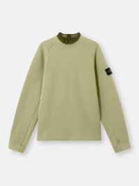 Crewneck sweatshirt in organic cotton diagonal fleece, featuring a ribbed knit insert inside the neckline. Garment dyed. FABRIC RESEARCH AND TREATMENT Crewneck sweatshirt in organic cotton diagonal fleece. Garment dyed. STYLE AND FIT Ribbed knit insert inside neckline. Raglan sleeves. Stone Island badge on left sleeve. Regular fit. COMPOSITION AND CARE External Fabric: 100% Cotton. Collar: 48% Virgin Wool 43% Cotton 8% Polyamide / Nylon 1% Elastane / Spandex