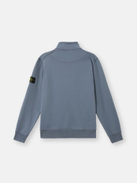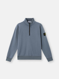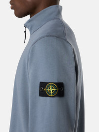 Sweatshirt in organic cotton fleece with zipper-fastened standing collar, featuring finely ribbed lining, patch pockets, and overlock seams. Garment dyed. FABRIC RESEARCH AND TREATMENT Half-zipper sweatshirt in organic cotton fleece. Garment dyed. STYLE AND FIT Standing collar with finely ribbed lining and zipper fastening. Slanted patch pockets. Stone Island badge on the left sleeve. Overlock seams. Ribbed cuffs and bottom band. Regular fit. COMPOSITION AND CARE External Fabric: 100% Cotton. Ribbing: 97% Cotton 3% Elastane / Spandex
