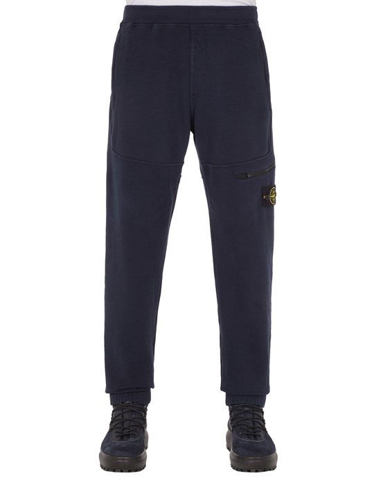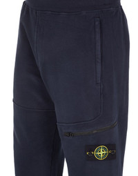 FABRIC RESEARCH AND TREATMENT Cargo sweatpants in stretch cotton fleece. Garment dyed. STYLE In-seam hand pockets with hidden zipper fastenings. Raised seam on front. One zipper-fastened pocket on the left leg; Stone Island badge below. Reinforced seat. Ribbed waistband with inner drawstring. Elasticized leg bottoms. DETAILS Width at end: 14.0 cm COMPOSITION 95% Cotton, 5% Elastane / Spandex