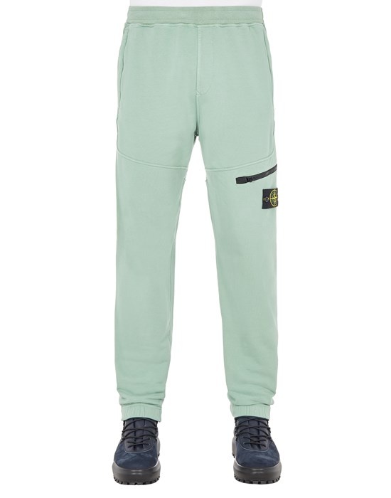 FABRIC RESEARCH AND TREATMENT Cargo sweatpants in stretch cotton fleece. Garment dyed. STYLE In-seam hand pockets with hidden zipper fastenings. Raised seam on front. One zipper-fastened pocket on the left leg; Stone Island badge below. Reinforced seat. Ribbed waistband with inner drawstring. Elasticized leg bottoms. DETAILS Width at end: 14.0 cm COMPOSITION 95% Cotton, 5% Elastane / Spandex