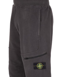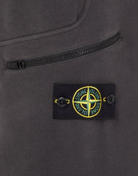 FABRIC RESEARCH AND TREATMENT Cargo sweatpants in stretch cotton fleece. Garment dyed. STYLE In-seam hand pockets with hidden zipper fastenings. Raised seam on front. One zipper-fastened pocket on the left leg; Stone Island badge below. Reinforced seat. Ribbed waistband with inner drawstring. Elasticized leg bottoms. DETAILS Width at end: 14.0 cm COMPOSITION 95% Cotton, 5% Elastane / Spandex