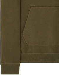 FABRIC RESEARCH AND TREATMENT Hooded sweatshirt in stretch cotton fleece. Garment dyed. STYLE Regular fit. Hood with cotton jersey lining, small mako cotton contour trim, and two snap fastenings. Raglan sleeves on back. Pouch pocket with slanting entrances. Stone Island badge on the left sleeve. On the back, under the neckline, lunette with inner lining. Ribbed cuffs and bottom band. COMPOSITION GARMENT: 95% Cotton, 5% Elastane / Spandex HOOD LINING: 100% Cotton