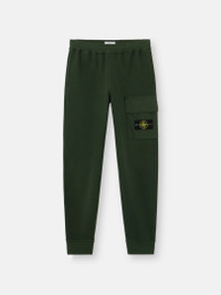 Sweatpants in brushed organic cotton fleece, featuring a cotton twill pocket on the leg and a snap pocket on the back, with elasticated cuffs and waistband. Garment dyed. FABRIC RESEARCH AND TREATMENT Sweatpants in brushed organic cotton fleece. Garment dyed. STYLE AND FIT Standing hand pockets. One back pocket with snap under fixed cotton twill band. Cotton twill bellows pocket on left leg with three snaps under flap and Stone Island badge. Elasticated ribbed cuffs. Elasticated waistband with inner drawstring. Regular fit. COMPOSITION AND CARE External Fabric: 100% Cotton. Pocket: 100% Cotton. Ribbing: 99% Cotton 1% Elastane / Spandex
