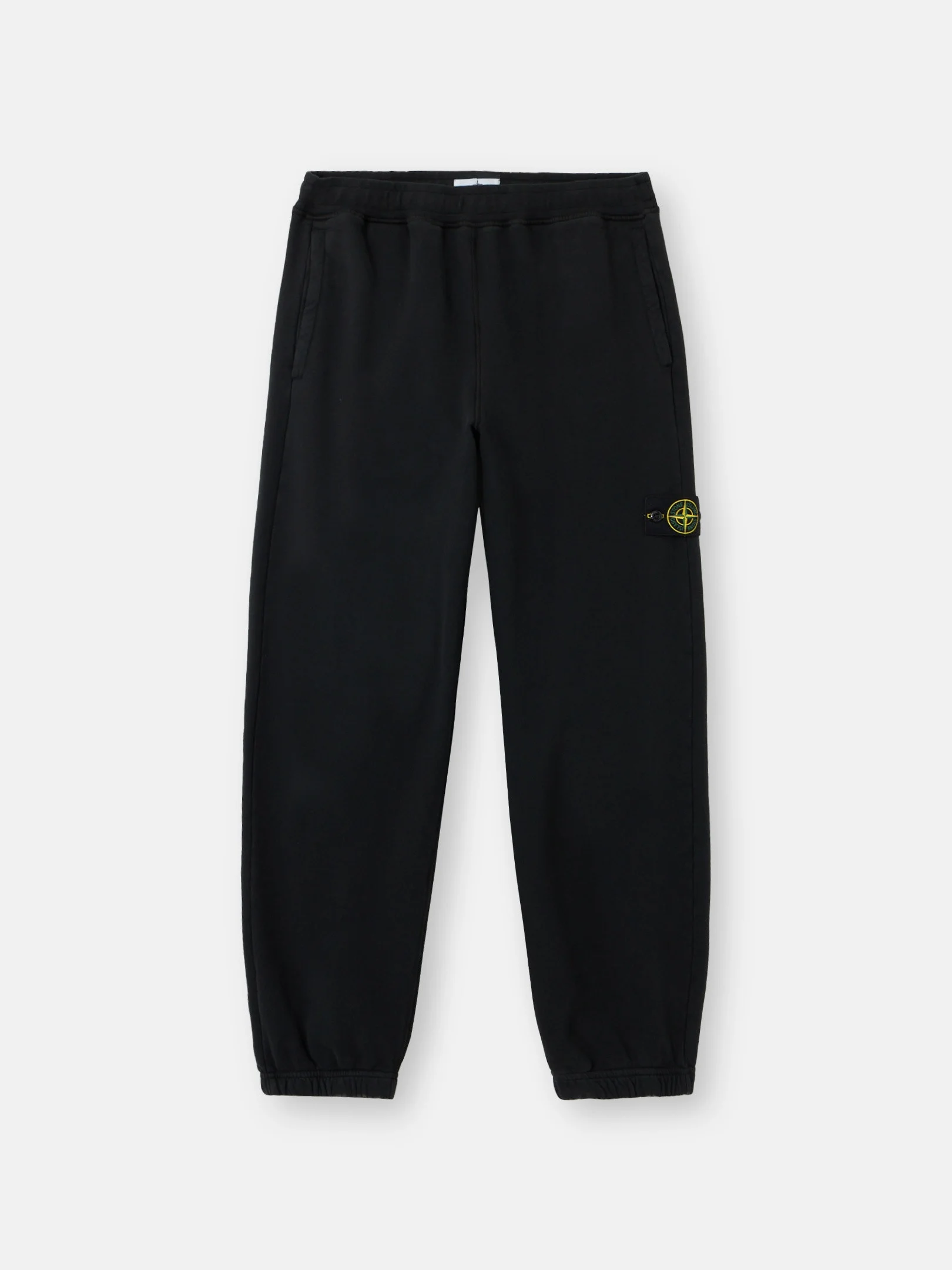 Sweatpants in brushed organic cotton fleece featuring elasticated cuffs, patch pocket with snap, and an elasticated waistband with inner drawstring. Garment dyed. FABRIC RESEARCH AND TREATMENT Sweatpants in brushed organic cotton fleece. Garment dyed. STYLE AND FIT Standing hand pockets. One back patch pocket with snap. Stone Island badge on left leg. Elasticated cuffs. Elasticated waistband with inner drawstring. Overlock seams. Loose fit. COMPOSITION AND CARE External Fabric: 100% Cotton. Ribbing: 99% Cotton 1% Elastane / Spandex