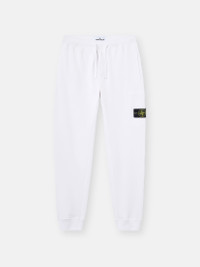 Sweatpants in organic cotton fleece, featuring hand pockets, a cargo pocket with concealed zipper, elasticated drawstring waistband, and ribbed cuffs. Midweight. Garment dyed. FABRIC RESEARCH AND TREATMENT Sweatpants in organic cotton fleece. Midweight. Garment dyed. STYLE AND FIT Vertical hand pockets. Patch cargo pocket on left leg with concealed zipper fastening and Stone Island badge. Angled back pocket with fixed flap and concealed snap. Elasticated ribbed cuffs and waistband with external drawstring. Slim fit. COMPOSITION AND CARE External Fabric: 100% Cotton Ribbing: 98% Cotton 2% Elastane / Spandex