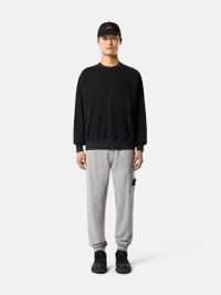 Sweatpants in organic melange cotton fleece, featuring hand pockets, a cargo pocket with concealed zipper, elasticated drawstring waistband, and ribbed cuffs. Midweight. Washed. FABRIC RESEARCH AND TREATMENT Sweatpants in organic melange cotton fleece. Midweight. Washed. STYLE AND FIT Vertical hand pockets. Patch cargo pocket on left leg with concealed zipper fastening and Stone Island badge. Angled back pocket with fixed flap and concealed snap. Elasticated ribbed cuffs and waistband with external drawstring. Slim fit. COMPOSITION AND CARE External Fabric: 100% Cotton. Ribbing: 98% Cotton 2% Elastane / Spandex