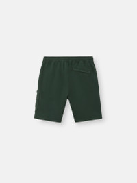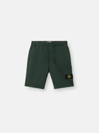 Bermuda shorts in organic cotton fleece, featuring a zipper pocket on the left leg, back flap pocket, and elasticated drawstring waistband with zipper fly. Garment dyed. FABRIC RESEARCH AND TREATMENT Bermuda shorts in organic cotton fleece. Garment dyed. STYLE AND FIT Standing hand pockets. One pocket on back with fixed flap and hidden snap. Patch pocket on left leg with hidden zipper and Stone Island badge. Elasticated waistband with drawstring. Zipper fly. Overlock seams. Regular fit. COMPOSITION AND CARE External Fabric: 100% Cotton. Ribbing: 98% Cotton 2% Elastane / Spandex. Pocket Bag: 100% Cotton