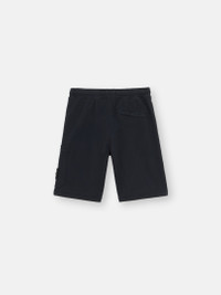 Bermuda shorts in organic cotton fleece, featuring a zipper pocket on the left leg, back flap pocket, and elasticated drawstring waistband with zipper fly. Garment dyed. FABRIC RESEARCH AND TREATMENT Bermuda shorts in organic cotton fleece. Garment dyed. STYLE AND FIT Standing hand pockets. One pocket on back with fixed flap and hidden snap. Patch pocket on left leg with hidden zipper and Stone Island badge. Elasticated waistband with drawstring. Zipper fly. Overlock seams. Regular fit. COMPOSITION AND CARE External Fabric: 100% Cotton. Ribbing: 98% Cotton 2% Elastane / Spandex. Pocket Bag: 100% Cotton