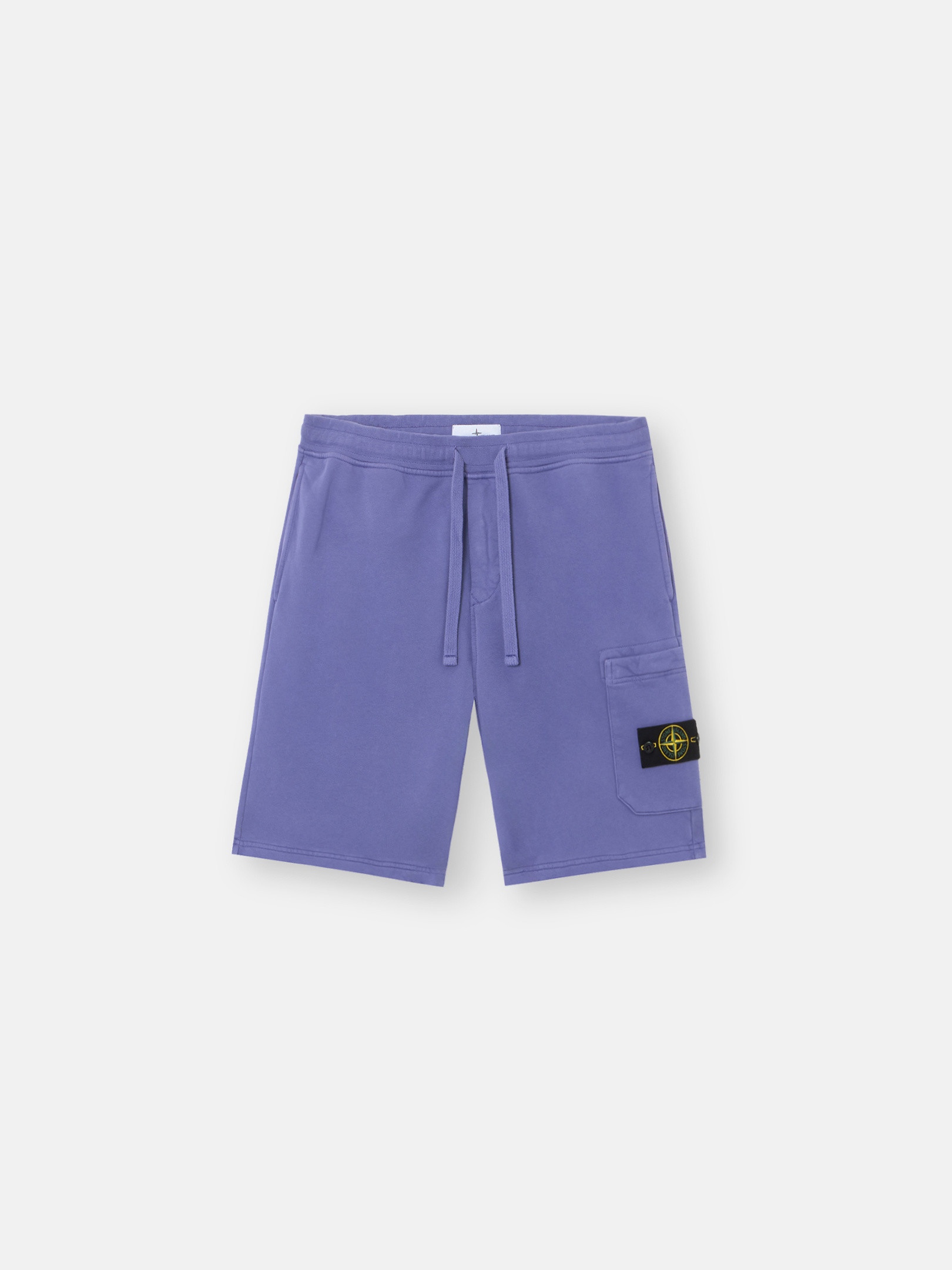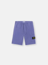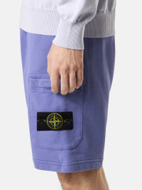 Cargo Bermuda shorts in organic cotton fleece with hand pockets, snap slit pocket on the back, patch pocket on the left leg, and elasticated drawstring waistband. Garment dyed. FABRIC RESEARCH AND TREATMENT Cargo Bermuda shorts in organic cotton fleece. Garment dyed. STYLE AND FIT Welt hand pockets. One slit pocket with hidden snap fastening on the back. Patch pocket with hidden zipper fastening and the Stone Island badge on the left leg. Overlock seams on inner legs. Elasticated waistband with outer drawstring. Regular fit. COMPOSITION AND CARE External Fabric: 100% Cotton. Trim: 100% Cotton