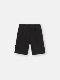 Cargo Bermuda shorts in organic cotton fleece with hand pockets, snap slit pocket on the back, patch pocket on the left leg, and elasticated drawstring waistband. Garment dyed. FABRIC RESEARCH AND TREATMENT Cargo Bermuda shorts in organic cotton fleece. Garment dyed. STYLE AND FIT Welt hand pockets. One slit pocket with hidden snap fastening on the back. Patch pocket with hidden zipper fastening and the Stone Island badge on the left leg. Overlock seams on inner legs. Elasticated waistband with outer drawstring. Regular fit. COMPOSITION AND CARE External Fabric: 100% Cotton. Trim: 100% Cotton