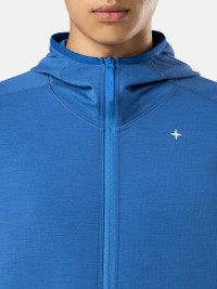 Full-zipper sweatshirt made from stretch wool cotton fleece featuring raglan sleeves, zipper pockets, thin overlock seams, ribbed details, and hood. FABRIC RESEARCH AND TREATMENT Hooded full-zipper sweatshirt in stretch wool cotton fleece. STYLE AND FIT Raglan sleeves. Embroidery of the Stone Island star on the left front. Standing hand pockets, with invisible zipper fastening. Thin overlock seams. Ribbed cuffs with thumb slit. Ribbed bottom band. Zipper fastening. Regular fit. COMPOSITION AND CARE 66% Virgin Wool 27% Cotton 7% Elastane / Spandex