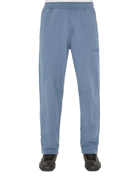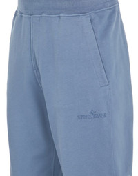 FABRIC RESEARCH AND TREATMENT Sweatpants in cotton fleece. Garment dyed. STYLE Slanting hand pockets. Embroidery of the Stone Island logo under the left pocket. One back pocket with hidden snap fastening. Elasticized waistband with inner drawstring. DETAILS Width at end: 20.0 cm COMPOSITION 100% Cotton