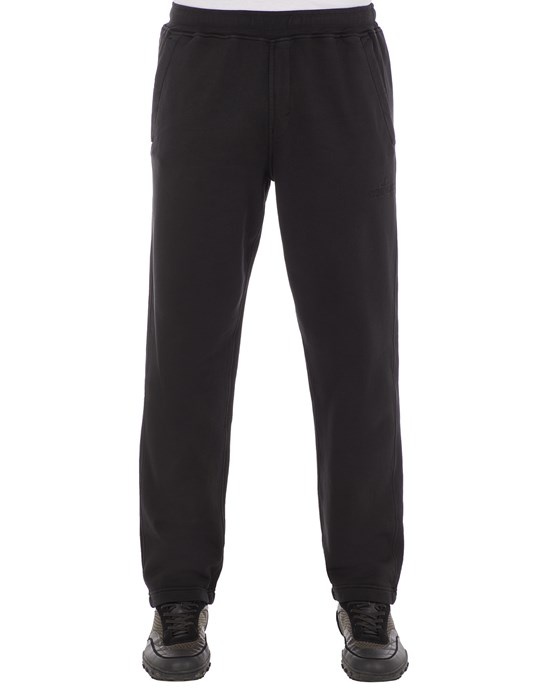 FABRIC RESEARCH AND TREATMENT Sweatpants in cotton fleece. Garment dyed. STYLE Slanting hand pockets. Embroidery of the Stone Island logo under the left pocket. One back pocket with hidden snap fastening. Elasticized waistband with inner drawstring. DETAILS Width at end: 20.0 cm COMPOSITION 100% Cotton
