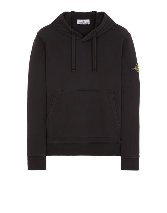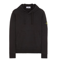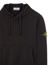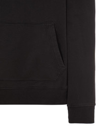 FABRIC RESEARCH AND TREATMENT Hooded sweatshirt in cotton fleece. Garment dyed. STYLE Regular fit. Contour drawstring on hood. Pouch pocket with slanting entrances lined in cotton tape. Overstitched seams. Stone Island badge on the left sleeve. Lunette with inner lining on back, under the neckline. Ribbed cuffs and bottom band. COMPOSITION 100% Cotton