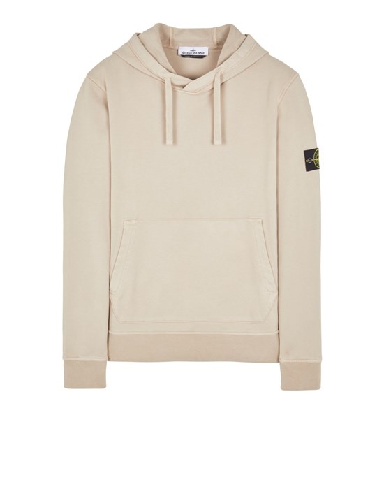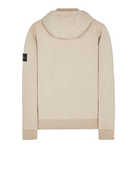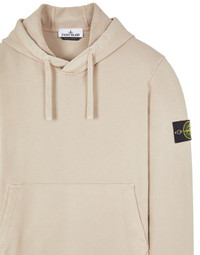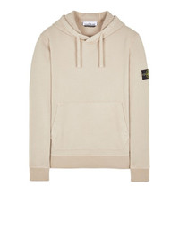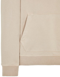 FABRIC RESEARCH AND TREATMENT Hooded sweatshirt in cotton fleece. Garment dyed. STYLE Contour drawstring on hood. Pouch pocket with slanting entrance lined in cotton tape. Overstitched seams. Stone Island badge on the left sleeve. Ribbed cuffs and bottom band. COMPOSITION 100% Cotton