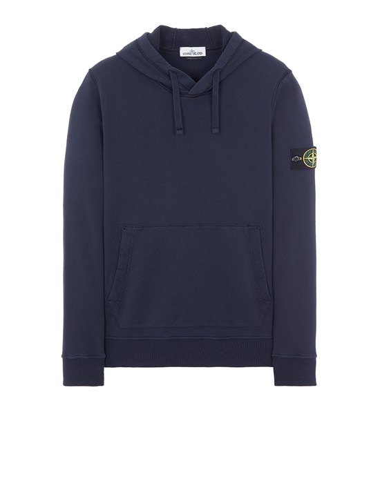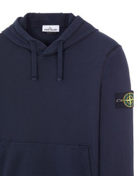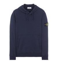 FABRIC RESEARCH AND TREATMENT GARMENT-DYED COTTON FLEECE: Hooded sweatshirt in cotton fleece. Garment dyed. STYLE Contour drawstring on hood. Pouch pocket with slanting entrances lined in cotton tape. Overstitched seams. Stone Island badge on the left sleeve. Ribbed cuffs and bottom band. COMPOSITION 100% Cotton