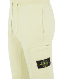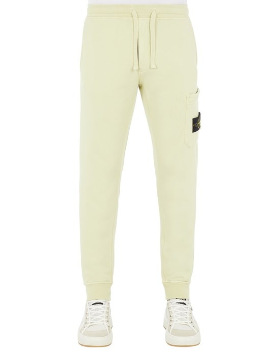 FABRIC RESEARCH AND TREATMENT GARMENT-DYED COTTON FLEECE: Jogging pants in cotton fleece. Garment dyed. STYLE In-seam hand pockets. One back pocket with hidden snap fastening. Patch pocket on the left leg, bearing the Stone Island badge; hidden zipper fastening. Elasticized waist with outer drawstring. Ribbed leg bottom. Zipper fly. DETAILS Width at end: 14.0 cm COMPOSITION External fabric: 100% Cotton TRIM: 100% Cotton
