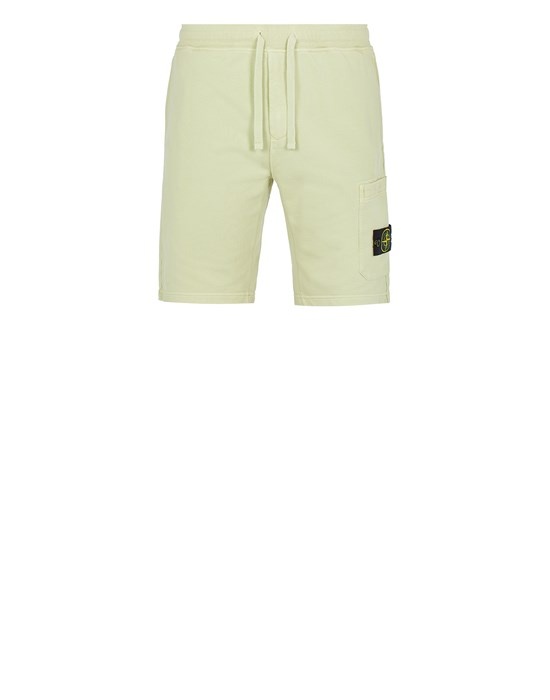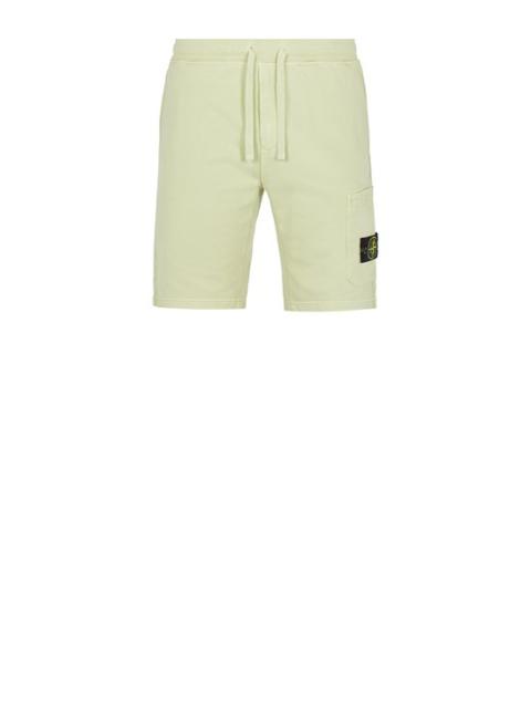 FABRIC RESEARCH AND TREATMENT GARMENT-DYED COTTON FLEECE: Bermuda shorts in cotton fleece. Garment dyed. STYLE In-seam hand pockets. One back pocket with hidden snap fastening. Patch pocket on the left leg, bearing the Stone Island badge; hidden zipper fastening. Elasticized waist with outer drawstring. Zipper fly. DETAILS Width at end: 25.0 cm COMPOSITION External fabric: 100% Cotton TRIM: 100% Cotton