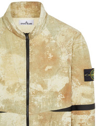 FABRIC RESEARCH AND TREATMENT DISSOLVING GRID CAMO ON ECONYL® REGENERATED NYLON: Blouson in a nylon canvas garment made with a trilobate structure sheen ECONYL® regenerated yarns. The pre-and post-consumer, end-of-life nylon is recycled with a complex depolymerization process to create this fiber that features the same intrinsic characteristics of nylon from raw fossil materials. The digital print of an original camouflage created by Stone Island by artfully dirtying parts of a mesh support is partially enhanced by an embossed effect motif further emphasized by the garment dyeing. It undergoes an elaborate dual-color formula overdyeing process. A special PFC-free anti-drop agent is added to the elaborate dual-color formula overdyeing process. COMPOSITION GARMENT: 100% Polyamide / Nylon LINING: 100% Polyamide / Nylon
