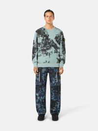 Crewneck sweatshirt made from organic cotton fleece printed with a camouflage pattern inspired by satellite images of Earth, featuring ribbed details. FABRIC RESEARCH AND TREATMENT Crewneck sweatshirt in organic cotton fleece printed with a camouflage pattern that takes inspiration from satellite images of planet Earth. STYLE AND FIT Ribbed neckline. Stone Island badge on the left sleeve. Ribbed cuffs and bottom band. Oversized fit. COMPOSITION AND CARE 100% Cotton
