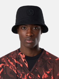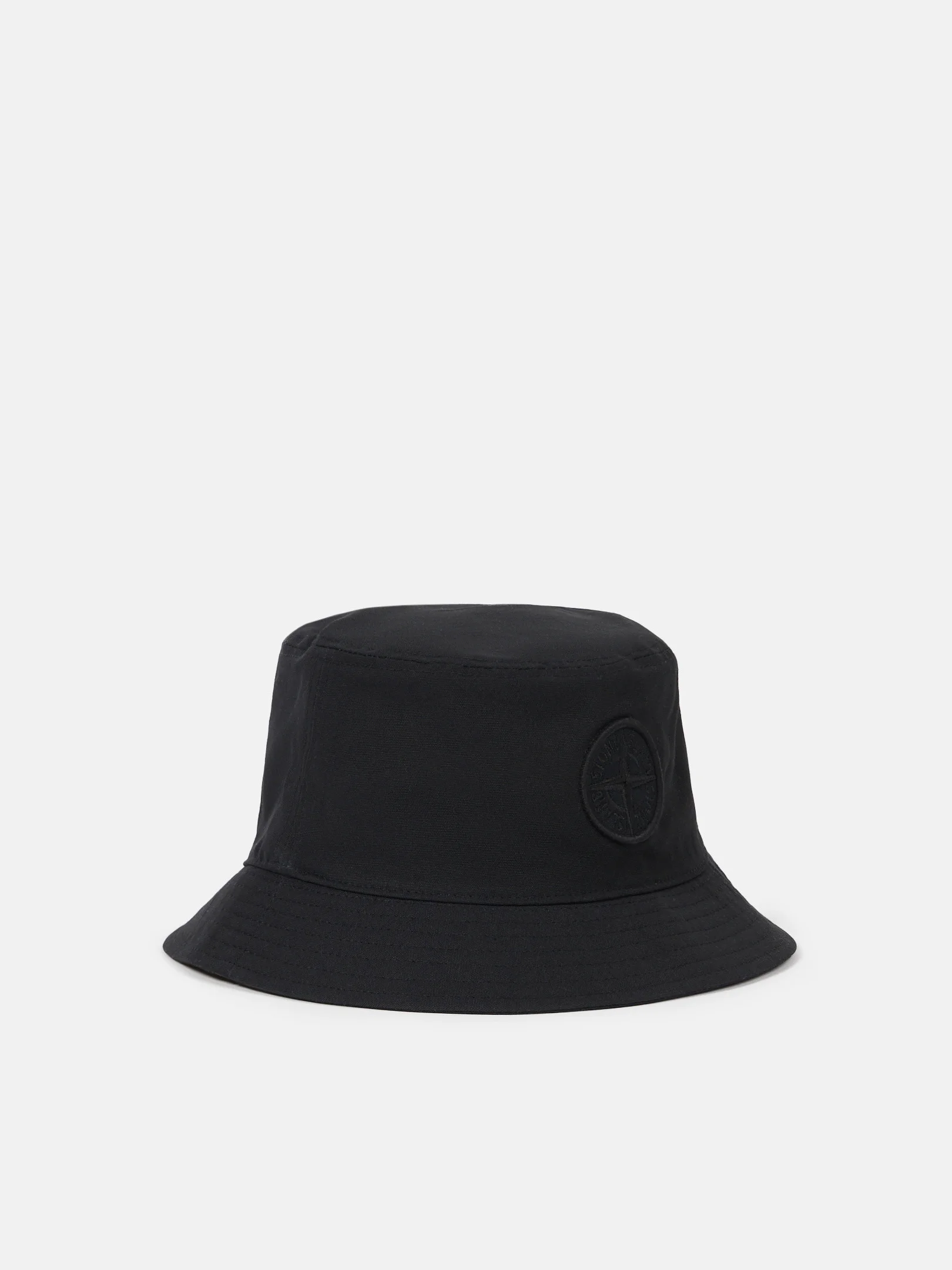 Bucket hat made from a cotton rep featuring a Compass logo embroidery, inner contour band, and cotton lining. FABRIC RESEARCH AND TREATMENT Bucket hat in cotton rep. STYLE AND FIT Raised embroidered Stone Island Compass logo on the crown. Inner contour band in cotton twill. Lined in black cotton. COMPOSITION AND CARE External Fabric: 100% Cotton. Lining: 100% Cotton
