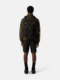 Backpack in CORDURA® 1500 with contrast nylon ripstop lining, featuring multiple zipper pockets, padded laptop compartment, and adjustable shoulder and sternum straps. FABRIC RESEARCH AND TREATMENT Backpack in CORDURA® 1500 and contrast-colored lining in nylon ripstop. STYLE AND FIT Two front pockets, one with standing zipper fastening and the other with hidden hook-and-loop fastening. Rounded bellows pockets on sides with hidden zipper fastening. On the right side, deep pocket with horizontal zipper fastening. Padded laptop pocket on the back with standing zipper fastening. Foam-padded inlay with debossed Stone Island Compass logo. Cinch top opening in glossy coated nylon. Bellows pocket on top lid with hidden zipper fastening and snaps. Nylon loop. Adjustable front straps with buckle fastening. Adjustable padded shoulder straps with nylon details, metal loops, Stone Island Compass logo patch, and adjustable sternum strap with buckle. COMPOSITION AND CARE External Fabric: 100% Polyamide / Nylon. Coating: 100% Acrylic Resin. Lining: 100% Polyamide / Nylon. Coating: 100% Polyurethanic Resin
