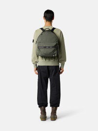 Backpack in Nylon Metal made from ECONYL® regenerated yarns with polyurethane coating, featuring a front zipper pocket, internal compartment, and a Compass logo patch. FABRIC RESEARCH AND TREATMENT Backpack in Stone Island's iridescent Nylon Metal fabric with polyurethane coating. The evolution of this iconic fabric sees the use of ECONYL® regenerated yarns: the life-ended nylon, pre- and post-consumer, is recycled with a complex depolymerization process to create this fiber that features the same intrinsic characteristics of nylon from fossil raw material. STYLE AND FIT Front bellows pocket with horizontal zipper and Stone Island Compass logo patch. Nylon ripstop lining. Internal compartment. Zipper fastening. Adjustable nylon tape shoulder straps. Top handle. COMPOSITION AND CARE External Fabric: 100% Polyamide / Nylon. Coating: 100% Polyurethanic Resin. Lining: 100% Polyamide / Nylon