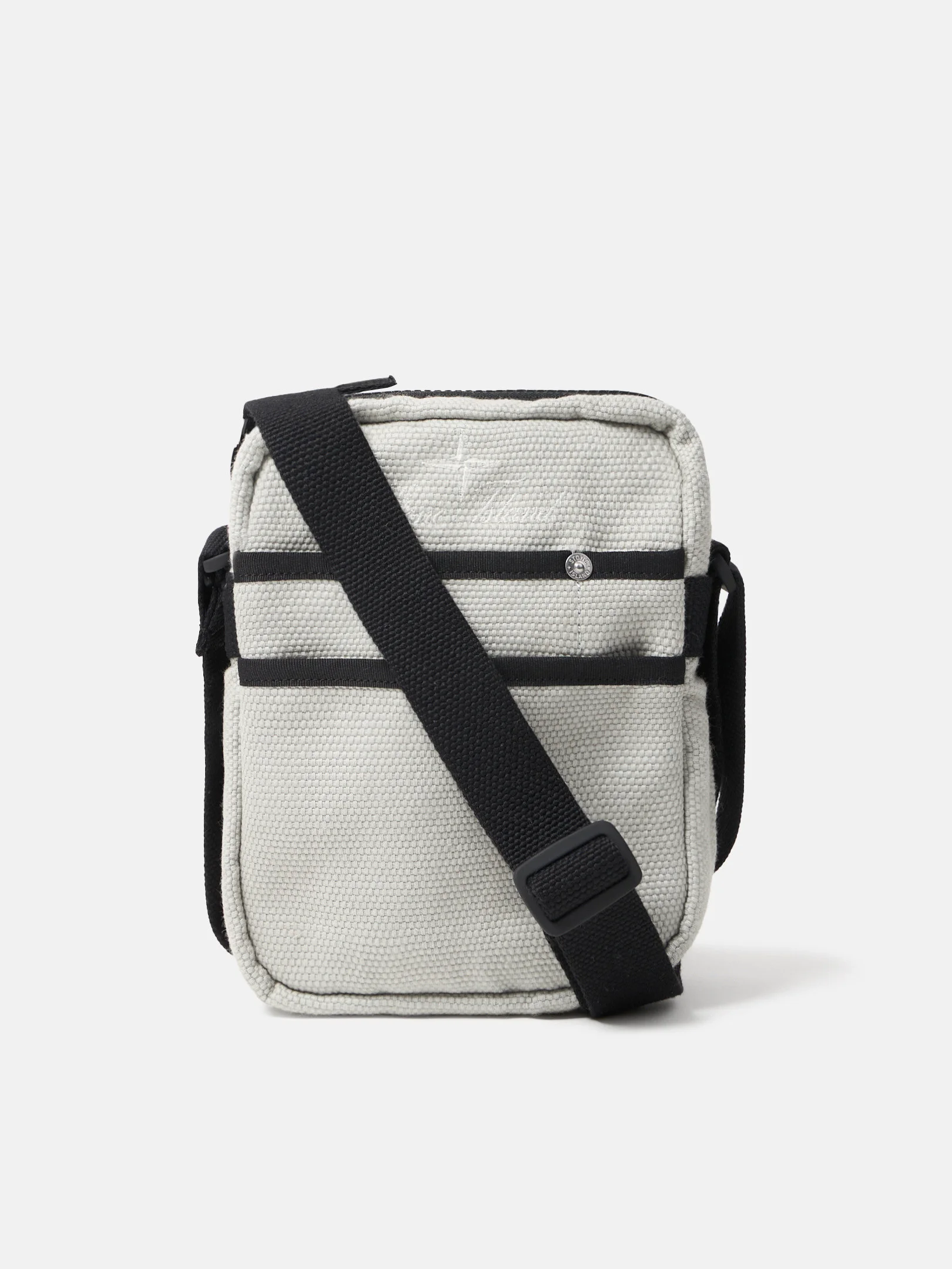 Pouch bag in cotton canvas, featuring an archival Stone Island logo, front patch pockets, an adjustable strap, and top zipper fastening. FABRIC RESEARCH AND TREATMENT Pouch bag in cotton canvas. STYLE AND FIT Front patch pockets. Embroidered archival Stone Island logo. Internal snap pocket. Adjustable strap. Top zipper fastening. COMPOSITION AND CARE External Fabric: 100% Cotton. Lining: 100% Polyamide / Nylon