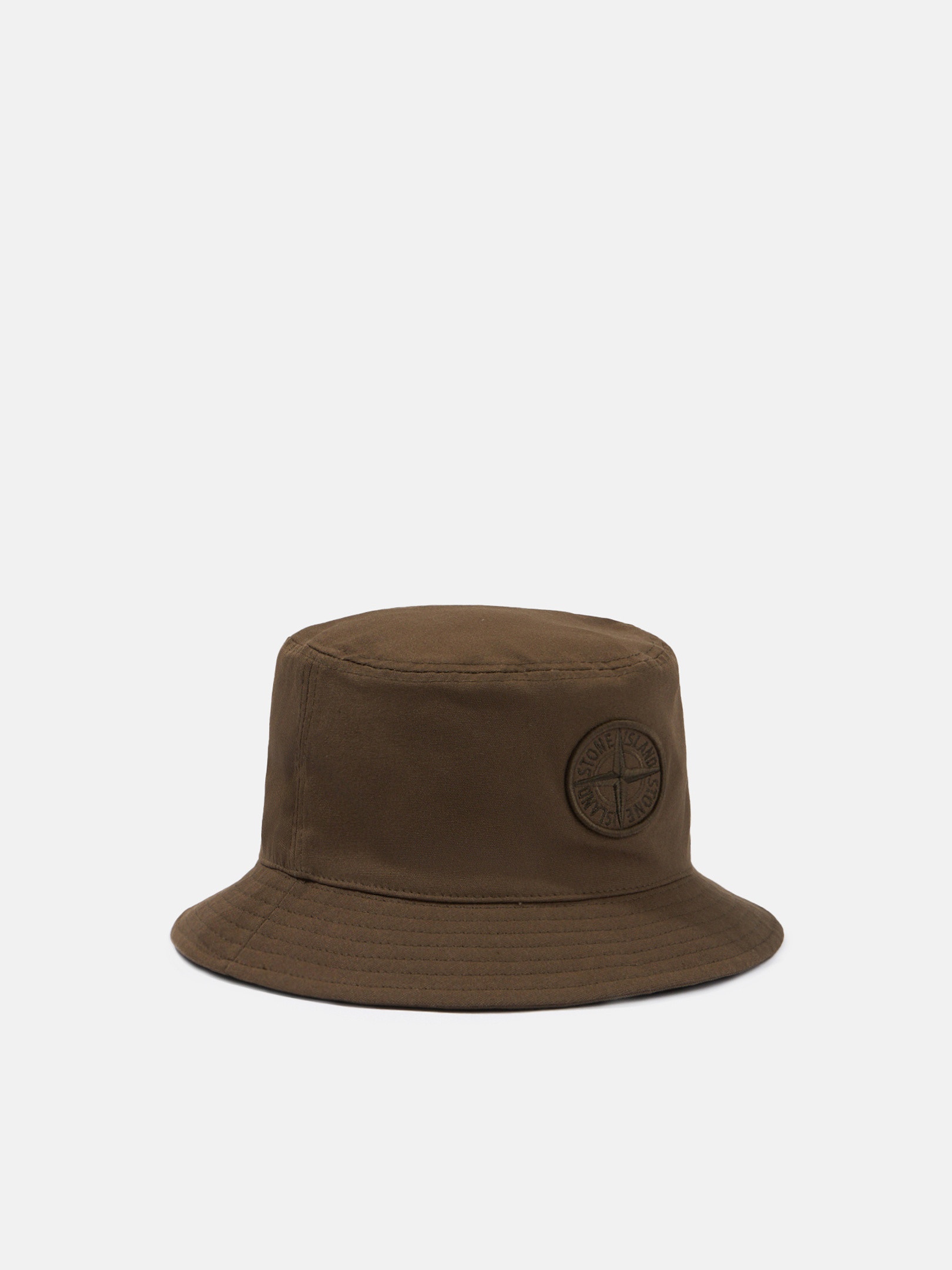 Bucket hat in cotton, featuring raised embroidered Stone Island Compass logo, an inner contour band, and black cotton lining. FABRIC RESEARCH AND TREATMENT Bucket hat in cotton rep. STYLE AND FIT Raised embroidered Stone Island Compass logo on the crown. Inner contour band in cotton twill. Lined in black cotton. COMPOSITION AND CARE External Fabric: 100% Cotton. Lining: 100% Cotton