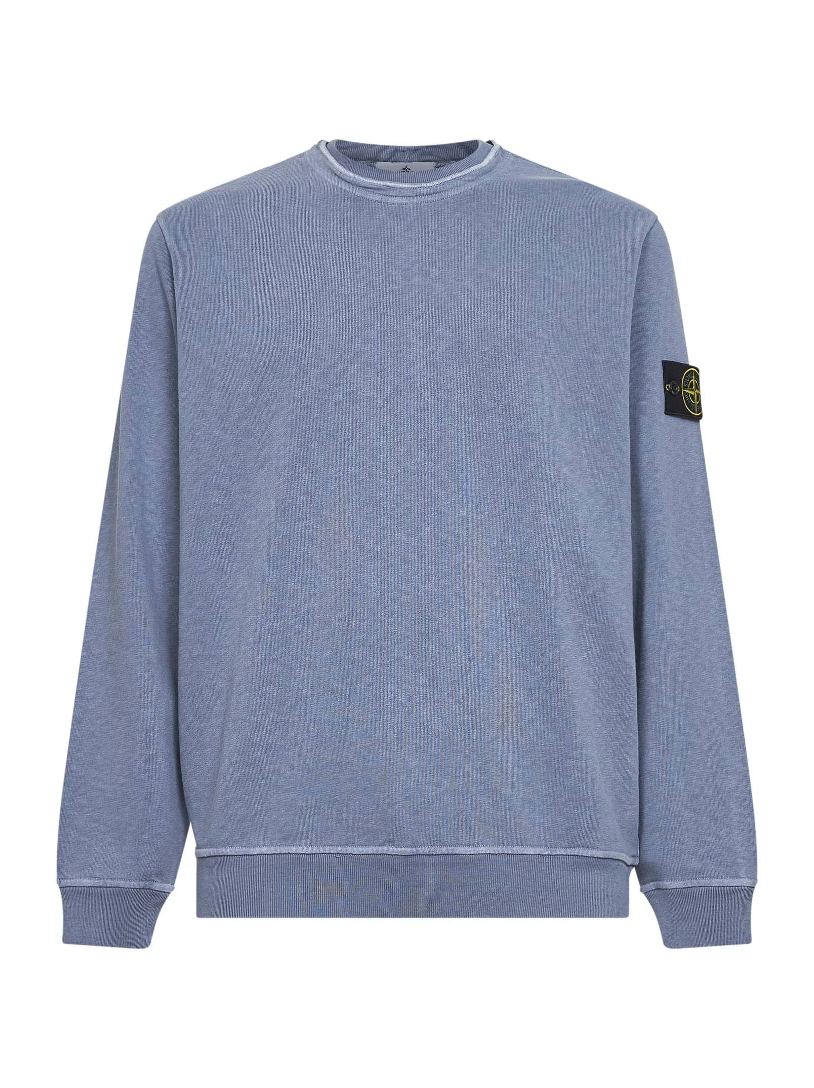- Ribbed crewneck, overlock stitching along outer neckline edge; ribbed insert at inner neckline - Long sleeves; stone island badge at left sleeve - Ribbed cuffs and bottom band - Garment-dyed model with the "old" treatment; lightweight - Regular fit - Avio blue color - 100% cotton - Made in romania Natural (Veg): Cotton100 % Made in: Romania Season: P26 L1S156100034S0060V0124