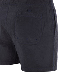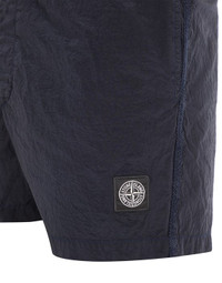 FABRIC RESEARCH AND TREATMENT NYLON METAL IN ECONYL® REGENERATED NYLON: Swimming trunks made in a new responsible Stone Island iridescent Nylon Metal fabric. The evolution of this iconic fabric sees the use of ECONYL® regenerated yarns: end-of-life, pre- and post-consumer nylon is recycled with a complex depolymerization process to create this yarn which boasts the same intrinsic characteristics of raw-material, first-fossil nylon. The fabric is resin treated inside for light water and wind resistance. The finished piece then undergoes an elaborate double dye procedure. COMPOSITION External fabric: 100% Polyamide / Nylon Lining: 100% Polyamide / Nylon