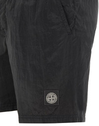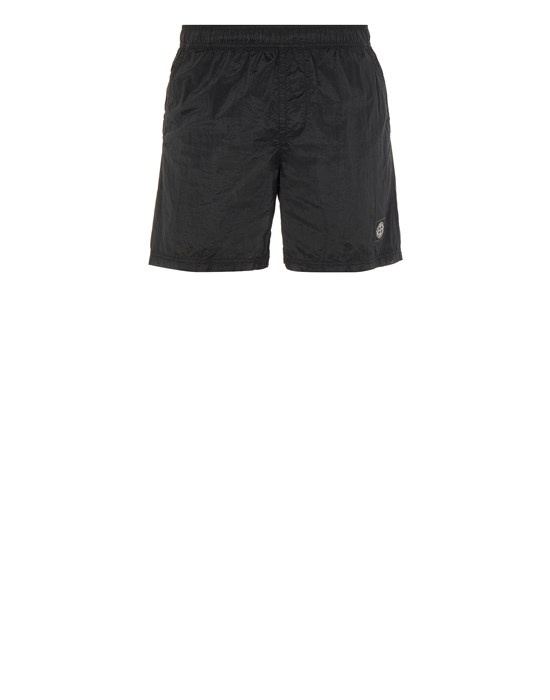 FABRIC RESEARCH AND TREATMENT NYLON METAL IN ECONYL® REGENERATED NYLON: Swim trunks made in a new responsible Stone Island iridescent Nylon Metal fabric. The evolution of this iconic fabric sees the use of ECONYL® regenerated yarns: the life end of nylon, pre- and postconsumer, is recycled with a complex depolymerization process to create this fiber that features the same intrinsic characteristics of nylon from raw fossil materials. The finished piece then undergoes an elaborate double dye procedure with the addition of a special anti-drop agent. STYLE Slanting hand pockets. One back pocket with hidden zipper fastening. Stone Island Compass patch on the left leg. Inner mesh. Elasticized waist, with inner drawstring. COMPOSITION External fabric: 100% Polyamide / Nylon Lining: 100% Polyamide / Nylon