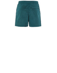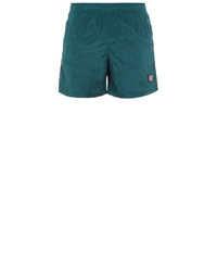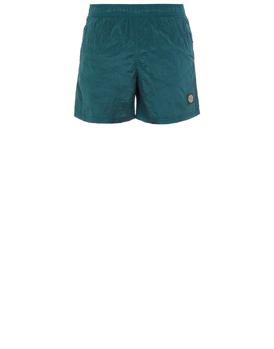 FABRIC RESEARCH AND TREATMENT NYLON METAL IN ECONYL® REGENERATED NYLON: Swim trunks made in a new responsible Stone Island iridescent Nylon Metal fabric. The evolution of this iconic fabric sees the use of ECONYL® regenerated yarns: the life end of nylon, pre- and postconsumer, is recycled with a complex depolymerization process to create this fiber that features the same intrinsic characteristics of nylon from raw fossil materials. The finished piece then undergoes an elaborate double dye procedure. STYLE Slanting hand pockets. One back pocket with hidden zipper fastening. Stone Island Compass patch on the left leg. Inner mesh. Elasticized waist, with inner drawstring. DETAILS Width at end: 30.0 cm COMPOSITION External fabric: 100% Polyamide / Nylon Lining: 100% Polyamide / Nylon