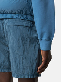 Swim shorts in Nylon Metal made from ECONYL® regenerated yarns, featuring pockets, an elasticated drawstring waistband, and mesh lining. Garment dyed with a double-color recipe. FABRIC RESEARCH AND TREATMENT Swim shorts in Stone Island's iridescent Nylon Metal fabric. The evolution of this iconic fabric sees the use of ECONYL® regenerated yarns: the life-ended nylon, pre- and post-consumer, is recycled with a complex depolymerization process to create this fiber that features the same intrinsic characteristics of nylon from fossil raw material. Garment dyed with a double-color recipe. Nylon mesh lining. STYLE AND FIT Slanted hand pockets. One back pocket with zipper hidden under fixed flap. Stone Island Compass logo patch on lower left leg. Elasticated waistband with inner drawstring. Regular fit. COMPOSITION AND CARE External Fabric: 100% Polyamide / Nylon. Lining: 100% Polyamide / Nylon