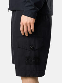 Cargo Bermuda shorts in a cotton canvas made from the finest premium cotton fibers that provide a natural weather barrier that is windproof, breathable, and durable. FABRIC RESEARCH AND TREATMENT Ghost pieces, derived from the concept of camouflage, are totally monochromatic. Even the Stone Island badge is created in a special monocolor version to blend in with the garment. Cargo Bermuda shorts made of a tightly woven cotton canvas fabric using the finest, long-staple premium organic cotton fibers. The combination of dense weaving and swelling properties of the fiber when wet provides an excellent weather barrier with no need of extra coating or lamination. It is entirely natural, offering a unique level of comfort and touch. It is windproof, breathable and very durable. STYLE AND FIT Slanted hand pockets. Two slit back pockets with hidden snap fastening. Patch pockets on legs with flap and button fastening; the left one features the Stone Island Ghost badge. Zipper and button fly. Regular fit. COMPOSITION AND CARE External Fabric: 100% Cotton. Pocket Bag: 100% Cotton