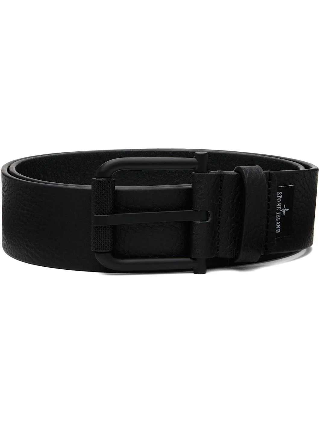 Pebble-grained leather belt. · Logo flag at length · Keeper loop · Pin-buckle fastening · W1.5" Supplier color: Black Leather. Made in Italy 252828M131002