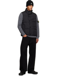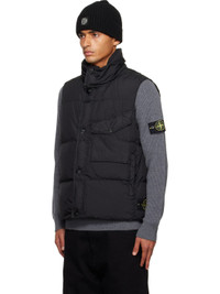 Down-filled and quilted recycled nylon taffeta vest. · RDS-certified down · Garment-dyed · Water-repellent resin coating · Stand collar · Two-way zip closure with press-stud placket · Flap pocket at chest · Zip pockets at waist · Bungee-style drawstring at hem · Detachable felted logo patch at side seam · Patch pocket at interior · Fully lined Supplier color: Black Fill 1: 80% duck down, 20% duck feather. Fill 2: 100% polyester. Body 1: 100% recycled nylon. Body 2: 100% resin. Lining: 100% polyamide. Made in Indonesia 252828M178013