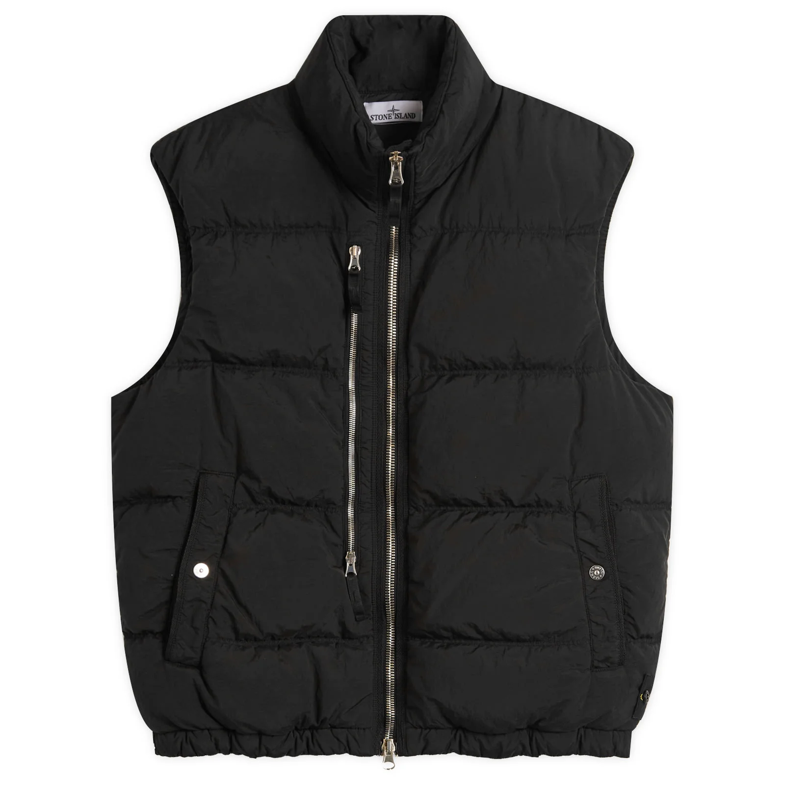 Stone Island’s iridescent Nylon Metal fabric is a masterclass in sustainable material innovation, regenerated from end-of-life nylon through a complex procedure and garment-dyed to give its rich colour. Packed with down, this vest delivers powerful warmth and functionality, signed off with a compass badge above the hem. This product has undergone a garment dyeing process. Any uneven colour of the surface is a distinctive feature of the wash. - 100% Nylon - Padding: 80% Duck Down, 20% Feather - Stand Collar - 2-Way Zip Closure - 2-Way Zip Chest Pocket - Snap Hand Pockets - Internal Pocket - Detachable Logo Badge - Gentle Machine Wash - Style Code: K2S15G100006-V0029