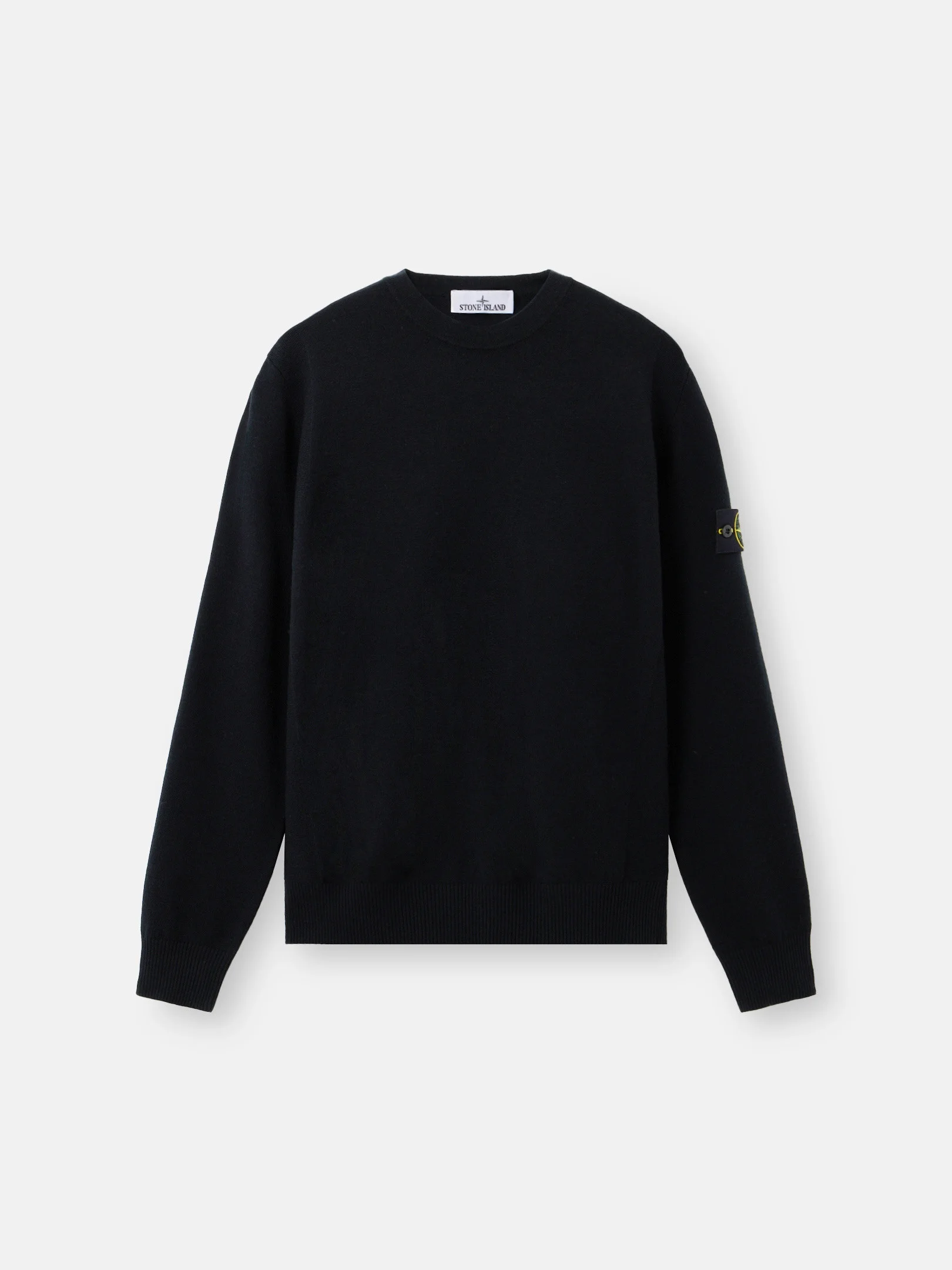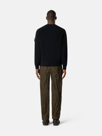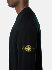 Knit crewneck sweater in stretch RWS wool featuring reverse stitch bands along the shoulder, neckline, and sides, with ribbed trims. Gauge 12. FABRIC RESEARCH AND TREATMENT Knit crewneck sweater in stretch RWS wool. Stockinette stitch. Gauge 12. STYLE AND FIT Ribbed neckline. Reverse stitch band along shoulder, back neckline, and sides. Stone Island badge on left sleeve. Ribbed cuffs and bottom band. Regular fit. COMPOSITION AND CARE 88% Virgin Wool 12% Polyester