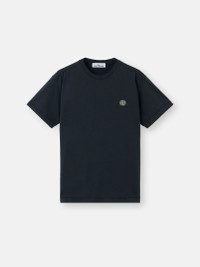 Short-sleeve T-shirt in cotton jersey, featuring a Compass logo patch on the chest and raised stitching at the hem. Garment dyed. FABRIC RESEARCH AND TREATMENT Short-sleeve T-shirt in cotton jersey. Garment dyed. STYLE AND FIT Ribbed neckline. Stone Island Compass logo patch on chest. Raised stitching along bottom hem. Slim fit. COMPOSITION AND CARE Garment: 100% Cotton. Ribbing: 100% Cotton