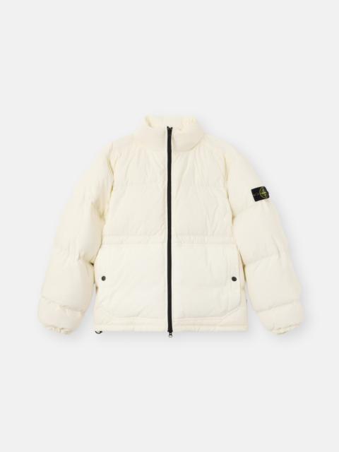 Down jacket in CORDURA® Advanced Fabrics ripstop nylon with a cotton-like hand and water-repellent treatment, featuring snap hand pockets and a two-way zipper closure. FABRIC RESEARCH AND TREATMENT Down jacket in a CORDURA® Advanced Fabrics ripstop nylon 6.6. The 30 denier Taslan yarns lend a matt appearance and a cotton-like hand to the material. The fabric is lightweight yet extremely durable. A special treatment renders it water repellent. Padded with the finest feathers specifically treated to withstand the garment dyeing procedure. RDS - Responsible Down Standard certified. STYLE AND FIT Standing collar. Standing hand pockets with snap. Stone Island badge on left sleeve. Two-way zipper closure. COMPOSITION AND CARE External Fabric: 100% Polyamide / Nylon. Lining: 100% Polyamide / Nylon. Padding: Duck Down (Minimum 80% Down) 80% Duck Down 20% Duck Feather. Contains Non-textile Parts Of Animal Origin