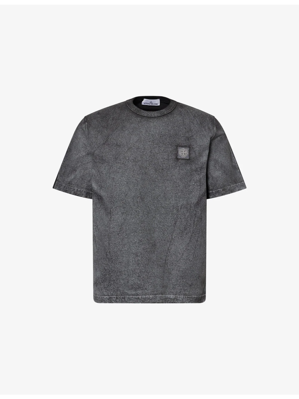 PRODUCT DETAILS - Stone Island cotton t-shirt - 100% cotton - Relaxed fit, crew neck, short sleeves, brand patch at chest, all-over reflective coating - Machine wash at 30°C - Made in Tunisia - Model is 6ft 2in/1.88m and wears a size medium - Lightweight, stretchy Ref: R04564848
