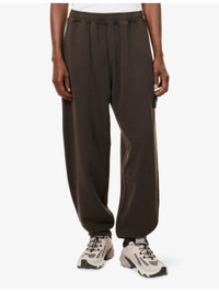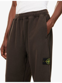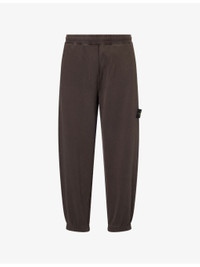 PRODUCT DETAILS - Stone Island cotton-jersey jogging bottoms - 100% cotton; trims 99% cotton, 1% elastane - Relaxed fit, high-rise, wide leg, drawstring elasticated waistband, two welt pockets at front, buttoned brand patch at side, buttoned pocket at back, elasticated cuffs - Machine wash at 30°C - Made in Romania - Model is 6ft 2in/1.88m and wears a size medium - Midweight, stretchy Ref: R04484312