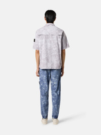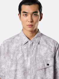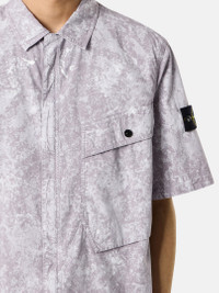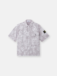 Short-sleeve shirt made from a very fine stretch canvas and dyed with specific recipes, featuring a white pigment treatment that is fixed through oven drying. FABRIC RESEARCH AND TREATMENT Short-sleeve shirt made of a very fine stretch canvas and dyed with specific recipes. After drying, it undergoes a white pigment treatment and is then fixed through oven-drying. A final wash eliminates the color residues. STYLE AND FIT Large bellows chest pocket with flap and snap fastening. Stone Island badge on the left sleeve. Vent on back. Hidden two-way zipper fastening. Comfort fit. COMPOSITION AND CARE 97% Cotton 3% Elastane / Spandex