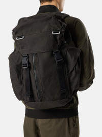 Backpack made from CORDURA® 1500 with a contrasting ripstop lining, featuring multiple pockets including a padded laptop pocket, cinch top opening, adjustable padded straps and sternum strap. FABRIC RESEARCH AND TREATMENT Backpack in CORDURA® 1500 and contrast-colored lining in nylon ripstop. STYLE AND FIT Two front pockets, one with standing zipper fastening and the other with hidden hook-and-loop fastening. Rounded bellows pockets on sides with hidden zipper fastening. On the right side, deep pocket with horizontal zipper fastening. Padded laptop pocket on the back with standing zipper fastening. Foam-padded inlay with debossed Stone Island Compass logo. Cinch top opening in glossy coated nylon. Bellows pocket on top lid with hidden zipper fastening and snaps. Nylon loop. Adjustable front straps with buckle fastening. Adjustable padded shoulder straps with nylon details, metal loops, Stone Island Compass logo patch, and adjustable sternum strap with buckle. COMPOSITION AND CARE External Fabric: 100% Polyamide / Nylon. Coating: 100% Polyurethanic Resin. Lining: 100% Polyamide / Nylon. Coating: 100% Polyurethanic Resin